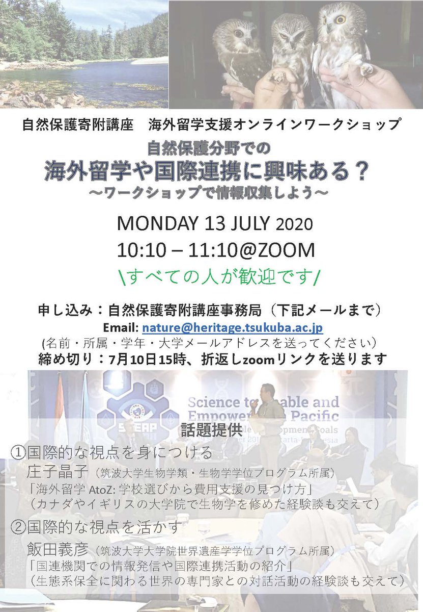 @Zoomが開催されます。自然保護に関わる「海外留学」や「国際連携」に興味がある方はどなたでも参加できます。http://www.conservation.tsukuba.ac.jp/joltpnzv0-15/#_15 …pic.twitter.com/YEbe0Ut6vo