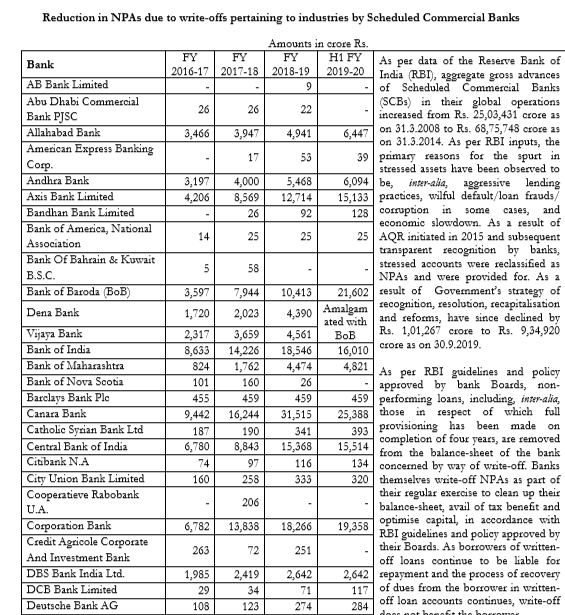 2014-19 S.C.B's write off=6.66 lakh crore Banks recovered=3.83 lakh crore (Which included recoveries from loan written off prior to 2014 also) Total