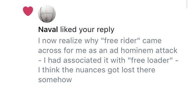 @naval if he could do a thread to explain the nuanced differences between being a "free rider" and a "free loader"