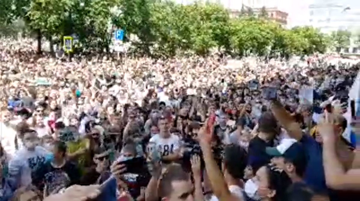 По разным оценкам на митинг вышло от 10 до 30 тысяч хабаровчан. Невозможно посчитать точнее, но это в любом случае самая большая протестная акция в истории Хабаровскаpic.twitter.com/sSHI96LYXY