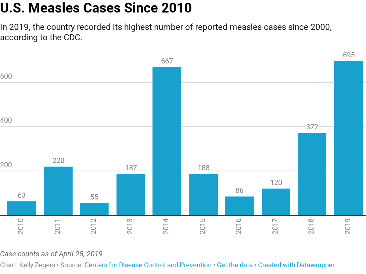 Measles in the U.S. has climbed to its highest level in 25 years, closing in on 700 cases this year in a resurgence largely attributed to misinformation that is turning parents against vaccines. http://nbc4dc.com/rN4imzT pic.twitter.com/CNKCxznbOc
