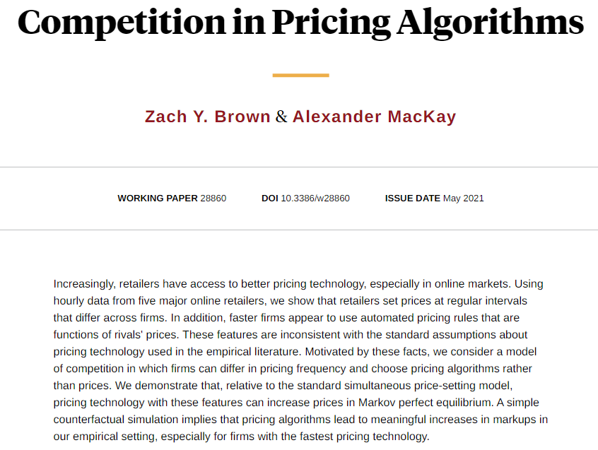 Dominant online retailers employ automated pricing strategies that quickly react to price changes by slower rivals, potentially limiting competition and raising prices even in the absence of collusion, from Zach Y. Brown and