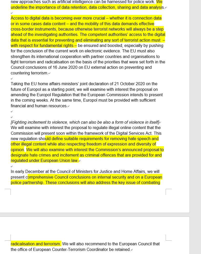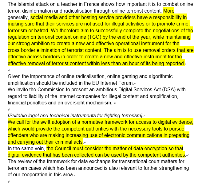 A bit more on encrypted communications from a separate draft ministerial statement being discussed among EU diplomats. The gist is the same as the draft home-affairs statement. Governments want access to WhatsApp, Signal, etc, when needed for counter-terrorism/crime purposes:pic.twitter.com/3j9PSxOGhy