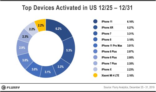 Top 10 smartphones for Christmas in the US are 9 iPhones in a row. My god. Also, no iPhone 11 Pro – getting squeezed by 11.pic.twitter.com/HxSW6h8zxu