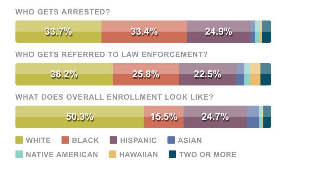 70,000 students were arrested at school during the 2013-14 school year alone. Two-thirds were students of color. Not one case where a school police officer intervened and stopped a school shooting. https://www.edweek.org/ew/projects/2017/policing-americas-schools/student-arrests.html?override=web#/overview …pic.twitter.com/zOLFCH1HR4