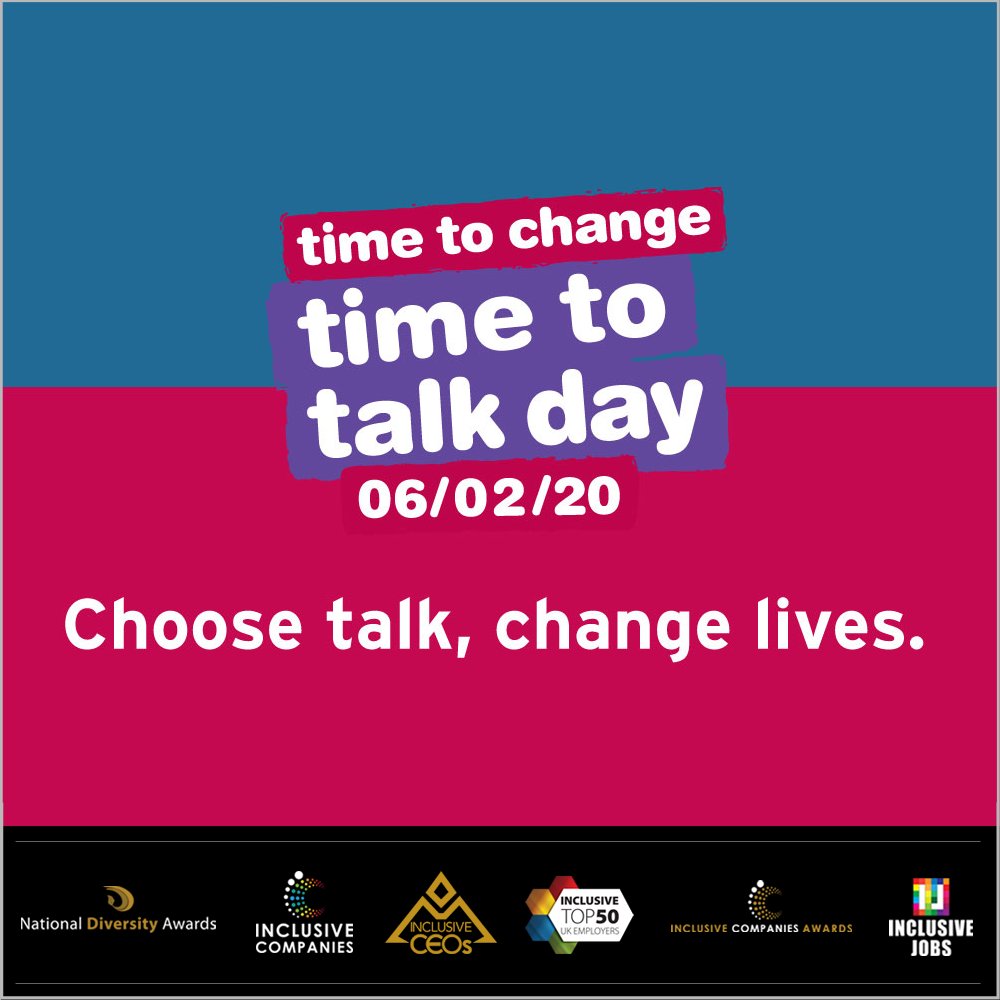 Thursday 06th Feb 2020 - Time To Talk Day! Mental health problems affect 1 in 4, yet too many people are made to feel isolated, ashamed & worthless because of this.