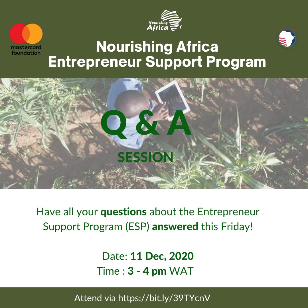 The introductory webinar to the Entrepreneur Support Program is only a few hours away. Get your questions ready and join us by 3pm WAT today via https://buff.ly/2IC1T6w . See you there!