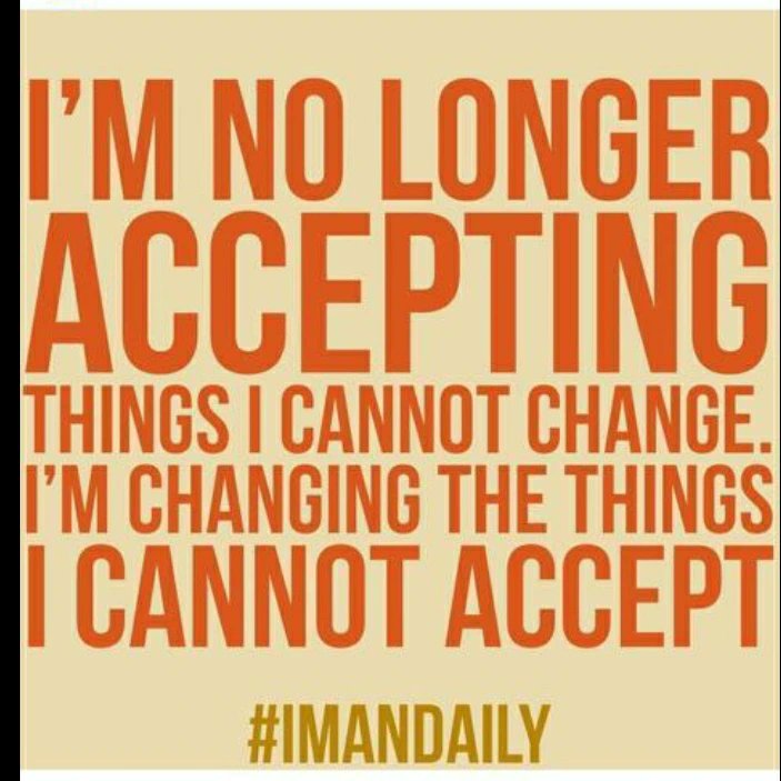 "I am no longer accepting things that I cannot change. I am changing the things I cannot accept!"This has been my mantra for a few years and it is still so apt for