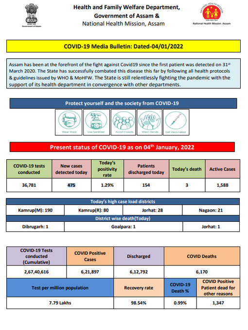 #COVID19 |#Assam reports 475 new cases, 3 deaths and 154 discharges; active cases at 1,588pic.twitter.com/IGfa93UWfR