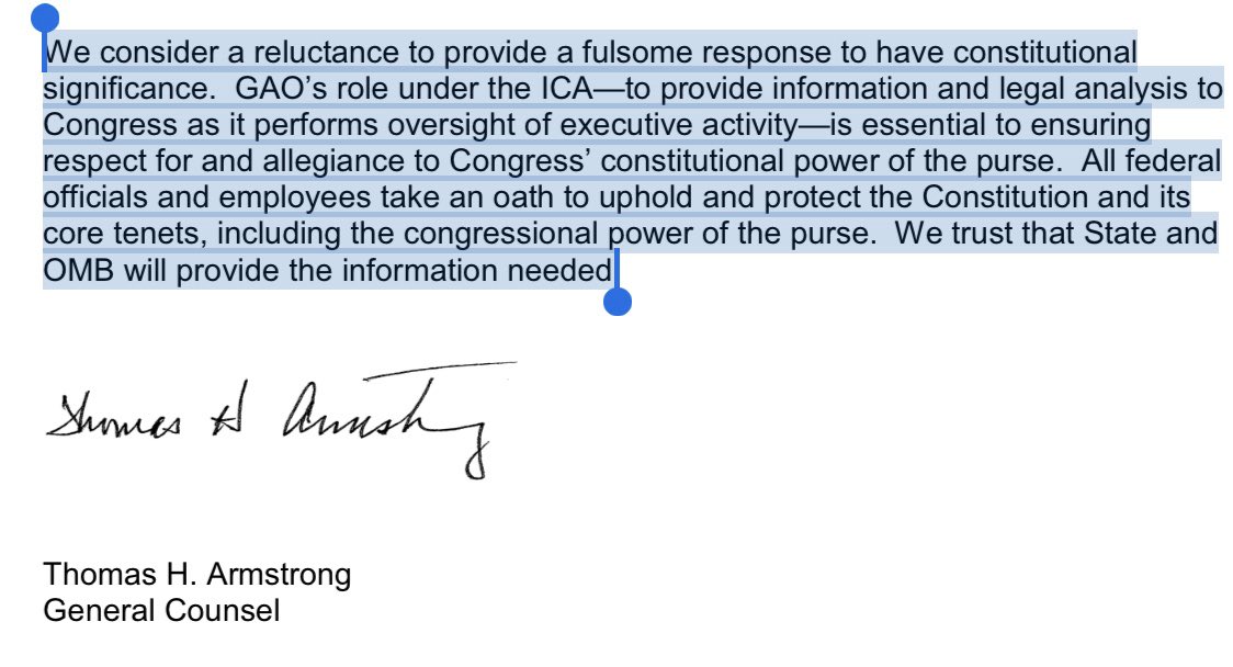 @kateashaw1 noticed in GAO opinion. It doesn’t just conclude White House broke law w Ukraine aid (mirroring Article 1). Also says was obstruction of the investigation (Article 2)&raises profound constitutional worries. That obstruction still continuingpic.twitter.com/008da4KeUv