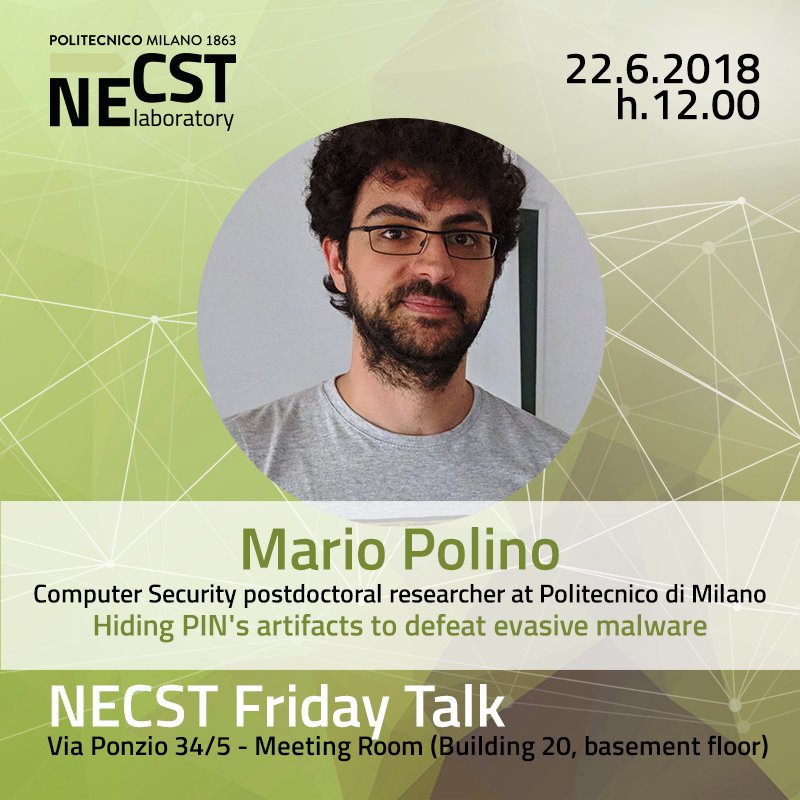 #NECSTFridayTalk: ore 12, nella nostra Meeting Room,@JinBlackx - ricercatore post-doc presso@polimi - ci parlerà di computer security e, in particolare, di malware detection.