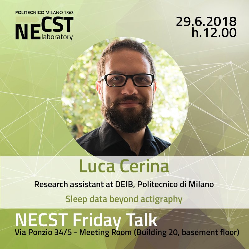 #NECSTFridayTalk: a chiudere il ciclo di talk di quest'anno è Luca Cerina - assegnista di ricerca nell'ambito biomedico presso il#NECSTLab - che ci parlerà del monitoraggio cardiaco durante le ore di sonno.pic.twitter.com/DI6WMJmqBf