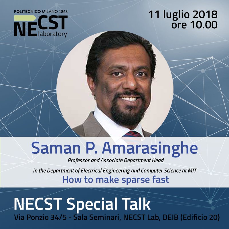 #NECSTSpecialTalk: Saman P. Amarasinghe - Professor and Associate Department Head, MIT- ci parlerà di TACO e GraphIT, tool per il miglioramento delle performance di applicazioni che prevedano l'uso di matrici sparse.