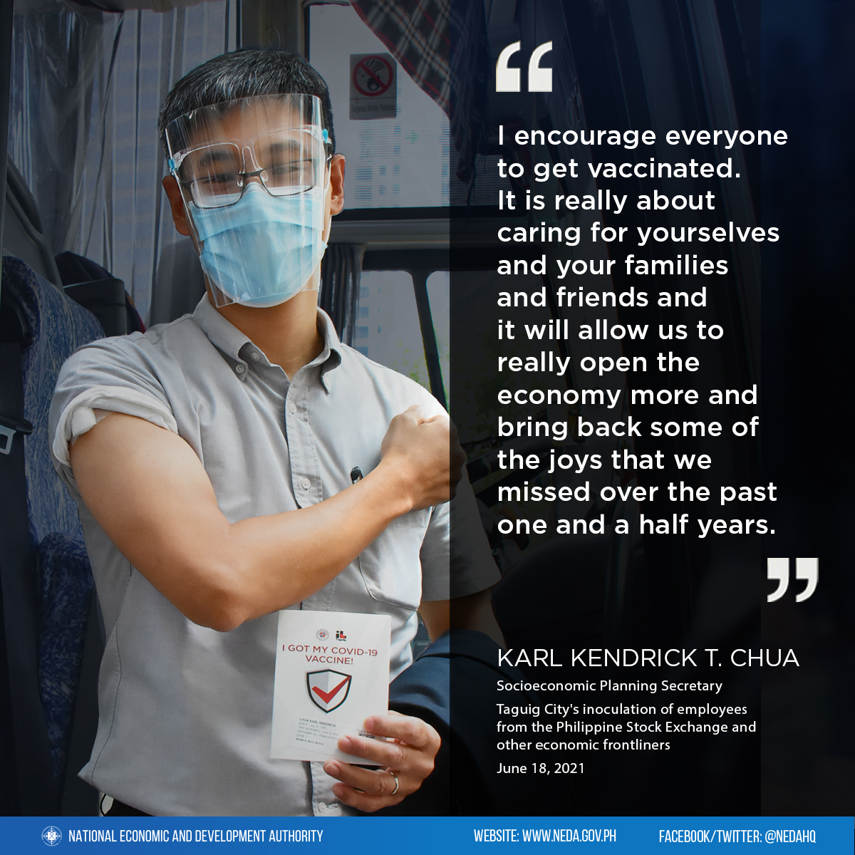 PANOORIN | NEDA Secretary Karl Chua, muling binigyan diin ang kahalagahan ng pagpapabakuna para sa pagbubukas ng ekonomiya. | via