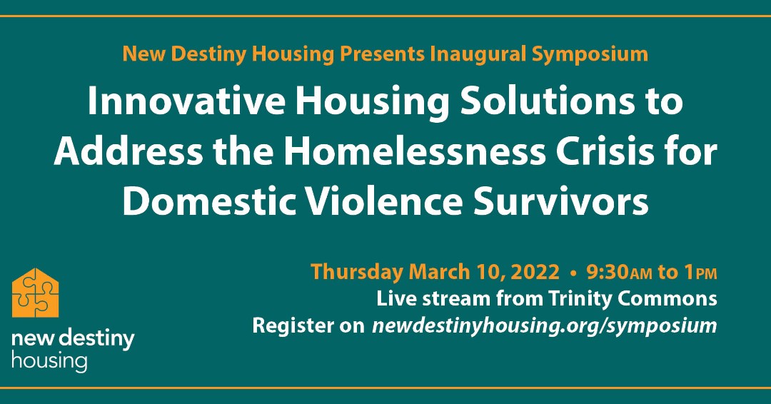 @newdestinyorg on March 10 for its Inaugural Symposium on best practices to prevent and end homelessness for domestic violence survivors. This half-day event will be live streamed from Trinity Commons@TrinityWallSt.#NDSymposium RSVP today: https://on.nyc.gov/3HyJ2RW pic.twitter.com/IV8cNkWIlZ