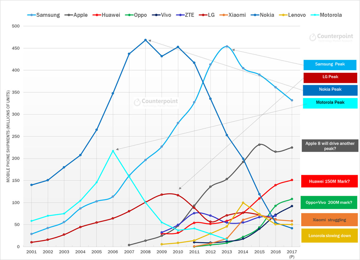 That's a great chart! I think what's amazing is despite the decline from peak, Samsung is still way above the competition.