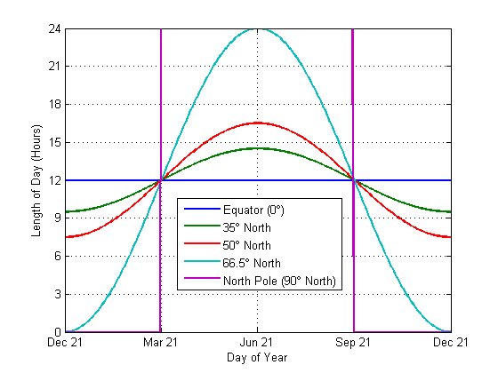 ...wait, sir, isn’t it only 12 hours on the Tropic of Cancer today? Isn’t it only 12 hours on the equator around the equinoxen? Isn’t it only 12 hours on the other tropic around the other solstice (when there will be less than 12 hours on the northern tropic)? Because sphere?
