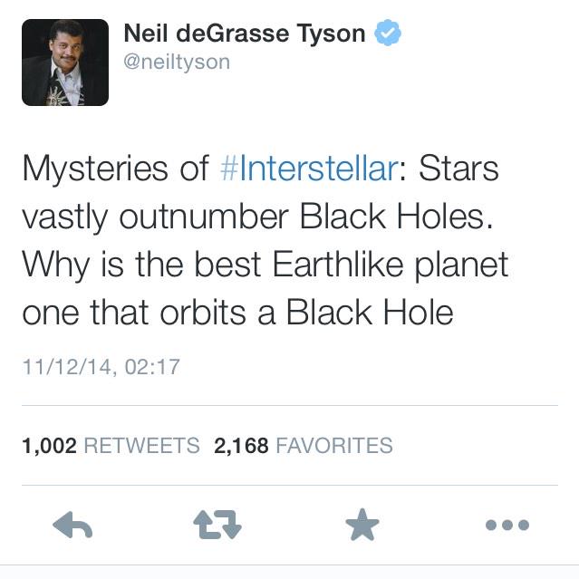@neiltyson Was it? It was just the best earthlike one within range of the wormhole they took...Thanks. Twitter will use this to make your timeline better. UndoUndo