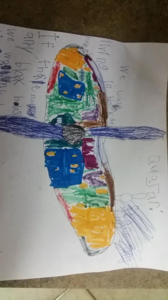 @neiltyson you should take 30 secs to watch my 6 yo explaining#quasars. http://youtu.be/4VXjmnqv6xM she ♡ spacepic.twitter.com/jIuoD65G2O