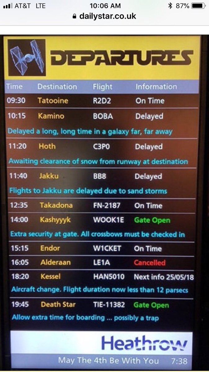 Thanks. Does this mean May fifth is reserved for the Sith?