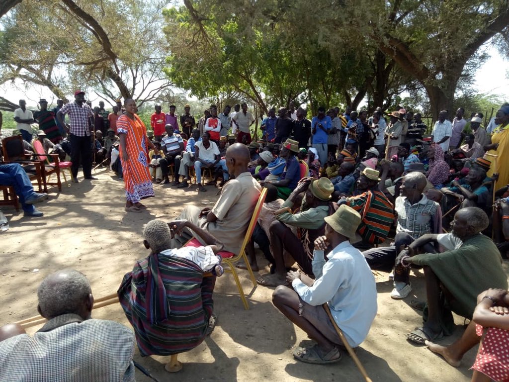 Ag. County Executive for Lands, Energy, Housing and Urban Areas Mgt. Esther Lokwei leading public sensitization for land delineation of the proposed Kakuma/Kalobeyei Municipality, at the Kakuma Baraza Parkpic.twitter.com/iWsWsYNwrF