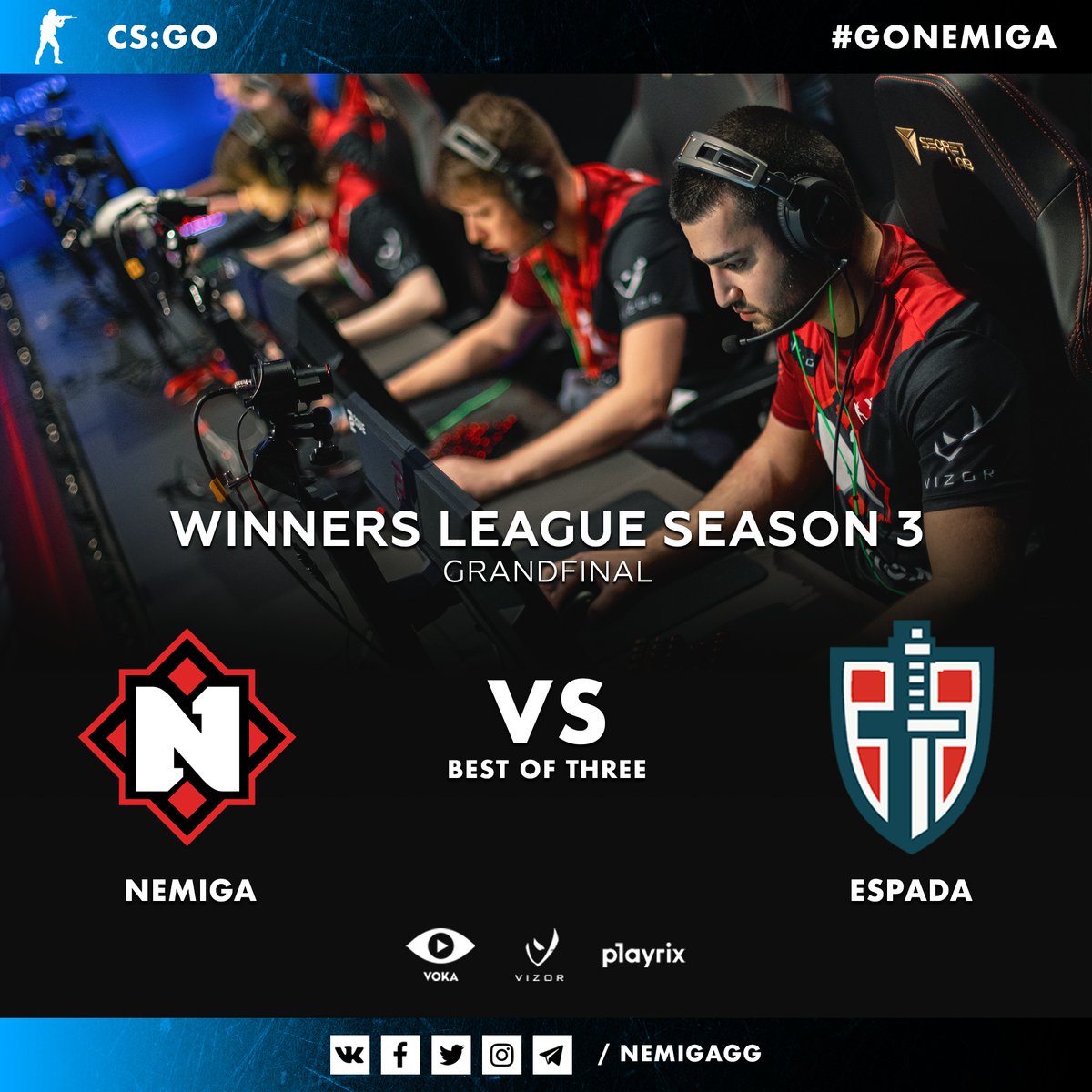 @WinnersLeagueGG. The match against Espada starts at 17 CET. Time to fight our way to the top! Join us on broadcast to cheer for the boys!