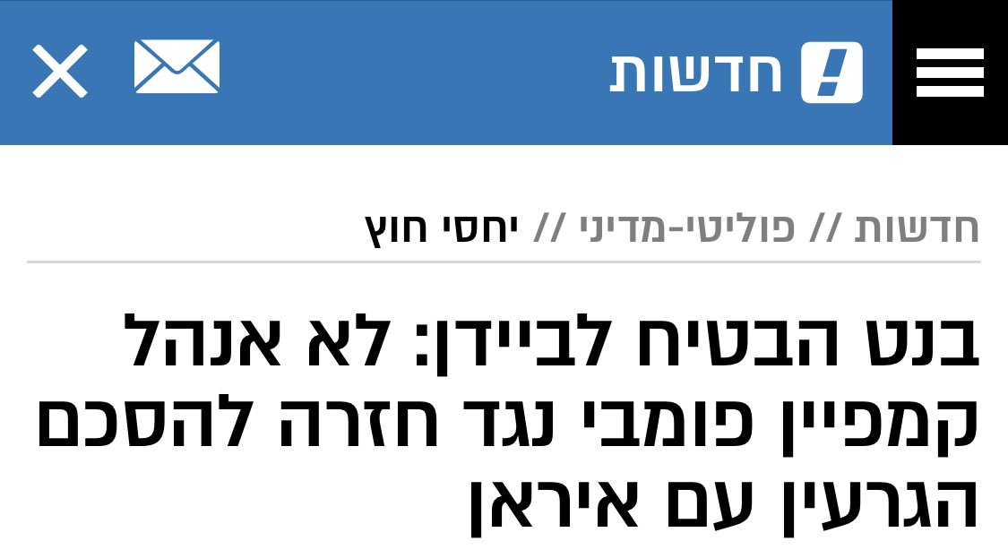 "הירושה הקשה" בנוגע לאיראן היא בדיוק כמו ספין "מניעת הסגר" בנוגע לקורונה. במקום לטפל בסכנה האמיתית, בנט ממציא סכנה שלא הייתה כדי לספר שמנע אותה. וכמו "שמנע" סגר במחיר הכלת תמותה גבוהה, הוא ישתמש בסיפור "הירושה" כדי להצדיק את החזרה להסכם הגרעין, וכניעה מוחלטת לסכנה האיראנית.