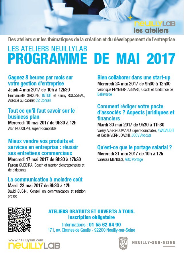 #ateliers Encore quelques places pour l'atelier animé par@QuickBooksStart! Pour s'inscrire --> https://www.neuillysurseine.fr/inscription-evenement?event=383 …https://twitter.com/QuickBooksStart/status/857859536421613569 …