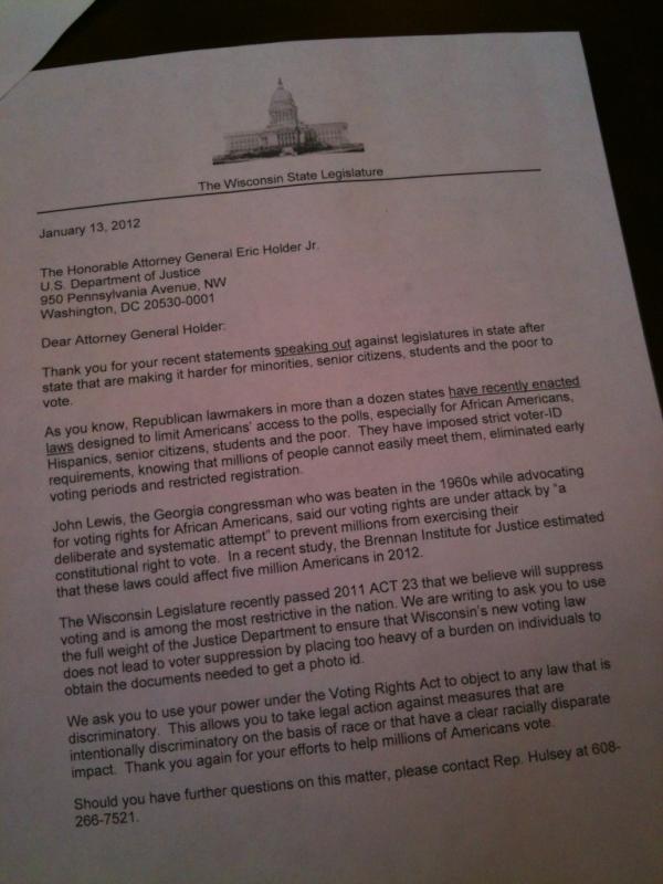 22 state lawmakers send letter to US Attorney General Eric Holder asking for review of Voter ID lawpic.twitter.com/jpt4Vjvv