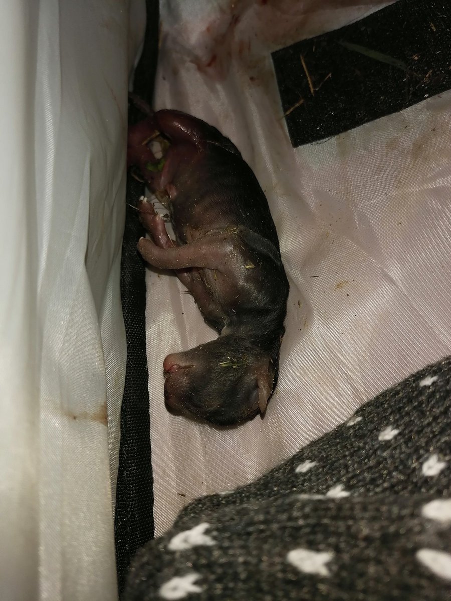 I'm sad to say the little baby did not make it through the night even with a fill in mom. The vet said from the condition of the mother the baby was at bad health. I named her Angel and went and picked her up laying her to rest with the others that I have lost