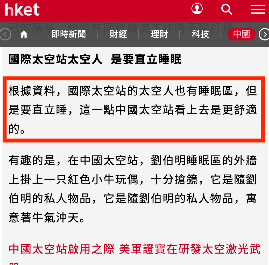 首先太空站無重力,任何姿勢瞓你都唔會感受到個背脊「瞓」住响任何嘢