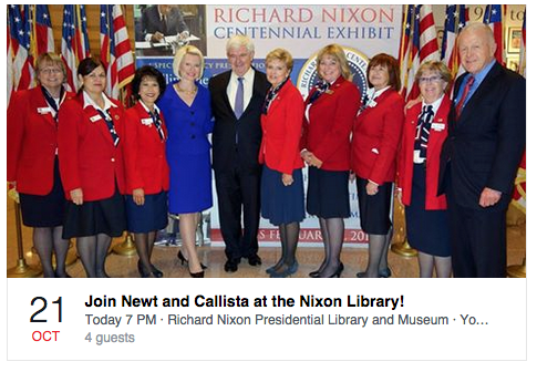 .@CallyGingrich & I are looking forward to being at @nixonfoundation tonight. Join us! https://www.facebook.com/events/751608864971992/ …pic.twitter.com/wQxHcMHY9w