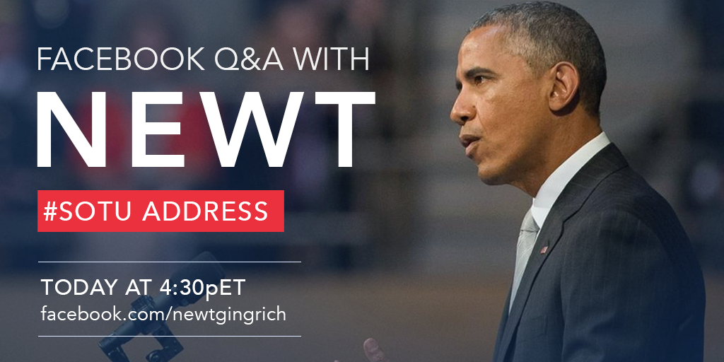 @POTUS has 2 large Gen. election victories and 8 #SOTU s under his belt. @newtgingrich is reduced to hosting @facebook Q&As.