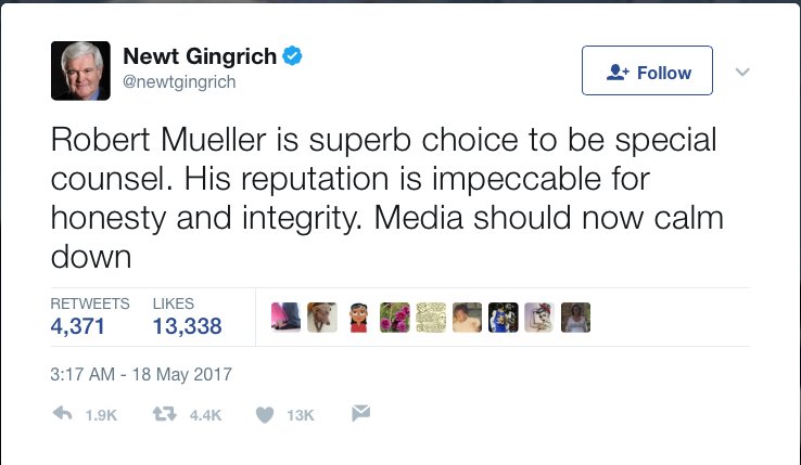 Ah the irony... Mr Mueller complemented by the far right (including Mr Trump) and now thrown under the bus.