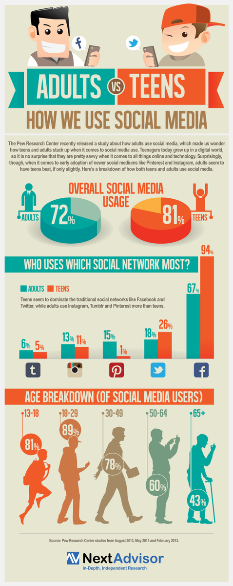 #Adults Vs.#Teens: How We Use#socialmedia http://www.nextadvisor.com/blog/2013/08/27/adults-vs-teens-how-we-use-social-media/ …@NextAdvisor pic.twitter.com/FF9p53weaJ