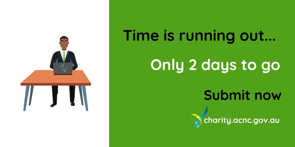 Today is the day! The 2019 Annual Information Statement for charities that operate on 1 July to 30 June financial is due today. Avoid penalties, submit now via the Charity Portal: http://charity.acnc.gov.au pic.twitter.com/VxwHY9wf8l