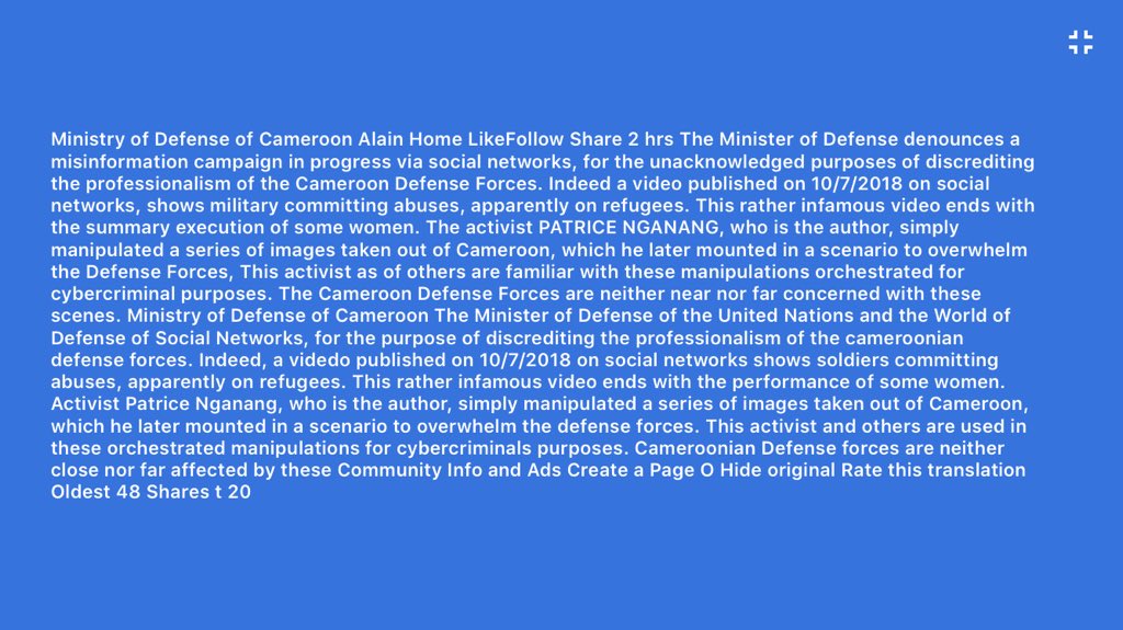 This propaganda claiming the video in question was ”doctored” has been long debunked. Cameroonian state propaganda outlets should focus on getting their social media accounts verified.