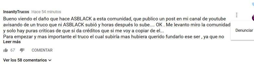 Anda si no es un tweet es un comentario puesto en su propio canal de youtube??? Pues amigo @YouTube @TeamYouTube INSANITYTRUCOS la denuncia va a ser puesta directamente a youtube por desde tu canal incitar al odio y a la violencia contra mi canal ASBLACK. Que para algo están....