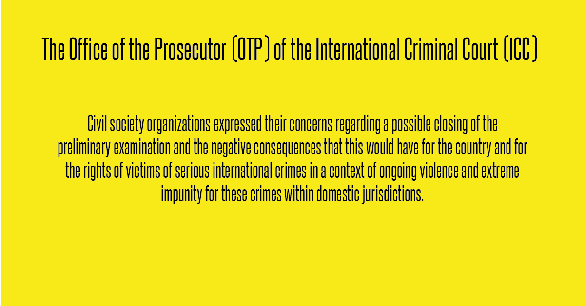 @IntlCrimCourt regarding a possible closing of the preliminary examination and the negative consequences that this would have for the country and for the rights of victims of serious international crimes.