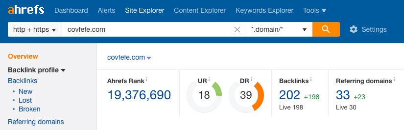 #covfefe domain alr taken. I was waaaay too slow. Good job fast indexing@ahrefs#seopic.twitter.com/LmAGKwyVV7