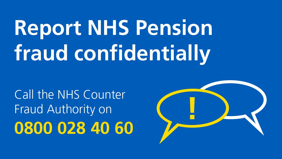 If you suspect NHS Pension fraud please report it in confidence to the NHS Counter Fraud Authority http://cfa.nhs.uk pic.twitter.com/6aOTtA1Ngo