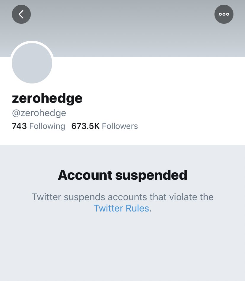 A @zerohedge ban is the beginning of the end for Twitter. And I say this as someone blocked by zerohedge (reasons unknown)
