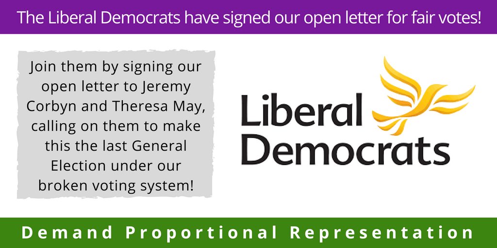 @LibDems have signed our letter calling on@UKLabour and@Conservatives to allow fair votes. You can too: https://www.makevotesmatter.org.uk/open-letter-2017 …pic.twitter.com/9asNTvyxJG