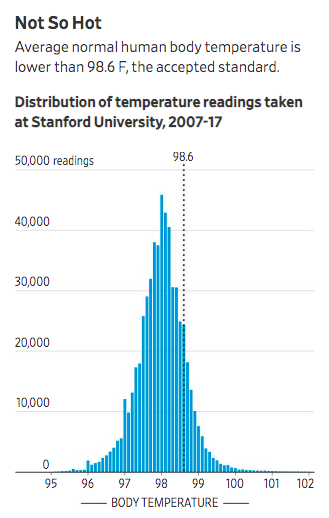 The average temperature of the human body has fallen by more than 1 degree over the past 150 years since the 98.6-degree standard was established, likely because people 150 years were riddled with low-grade infections. https://www.wsj.com/articles/98-6-degrees-fahrenheit-isnt-the-average-any-more-11579257001 …pic.twitter.com/TFED8HSFbb