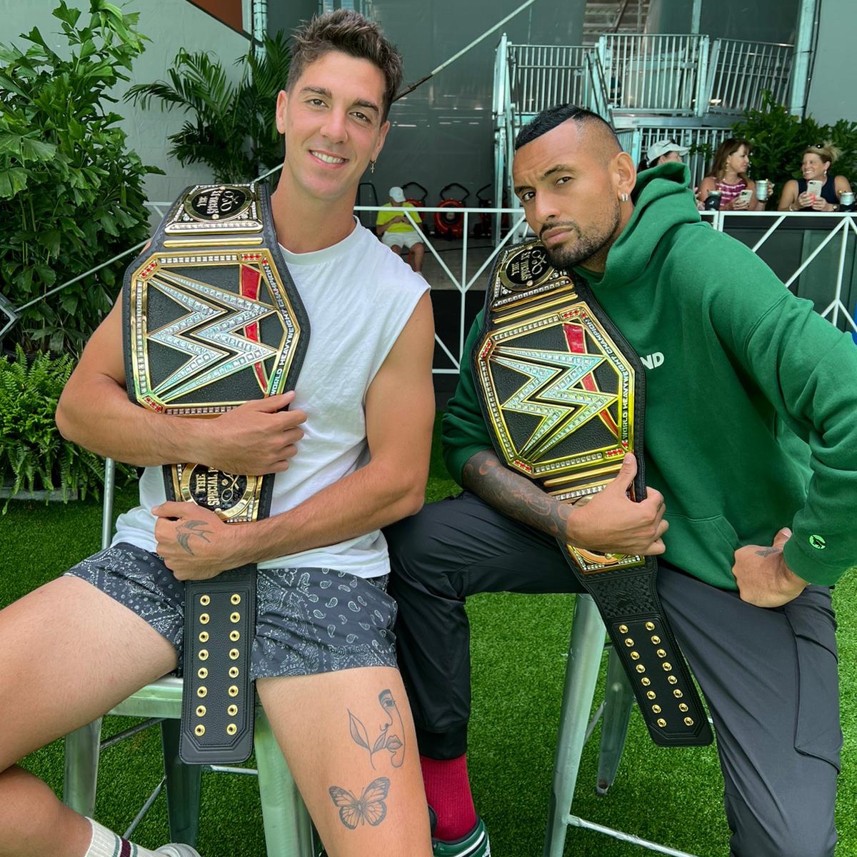 @WWE celebrates Tag Team@NickKyrgios &@TKokkinakis winning the 2022@AustralianOpen Men’s Doubles with these custom Championships! Congrats and best of luck at the@MiamiOpen