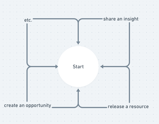 The way I think about it: imagine an org with formal and informal state. The formal state can be represented with a state machine with A SINGLE STATE! Each "step" always goes back to that initial state. But it transforms the informal state in the background.
