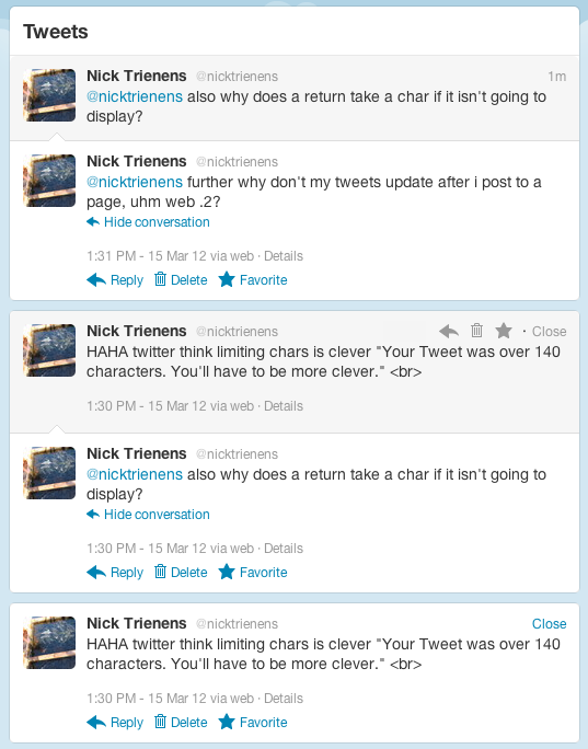 HAHA twitter think limiting chars is clever "Your Tweet was over 140 characters. You'll have to be more clever." <br>