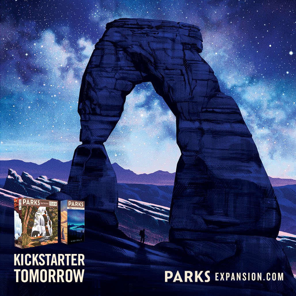 The magic of a star filled night awaits us tomorrow with PARKS Expansion: Nightfall, the next leg of your hike with PARKS, on Kickstarter. Head to http://parksmemories.com to get notified when we launch! Illustration: Arches National Park by