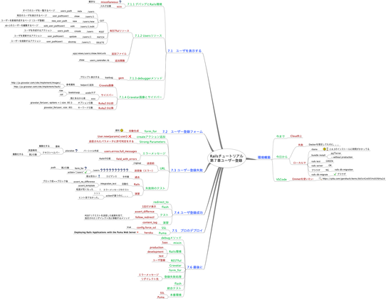 #Railsチュートリアル の第7章をやりながら#マインドマップ を#FreeMind ってソフトで描いてみました。#マインドマップ 初心者ですので許してつかぁさい。pic.twitter.com/11hQeoiXM8