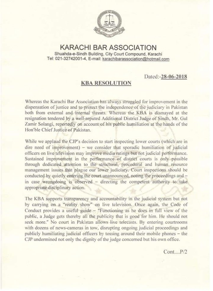 #Larkana Judge resignation was real. Karachi Bar Association expressed dismay over CJP ridiculing of the Add Sessions Judge Solangi. All those terming the resignation letter fake should apologize now@alisalmanalvipic.twitter.com/HKaa2QOdrj